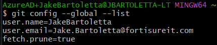 usernamewith your GitHub username you created earlier and the email associated with your GitHub account. Should be your FortisureIT emailgit config --global user.name "username"